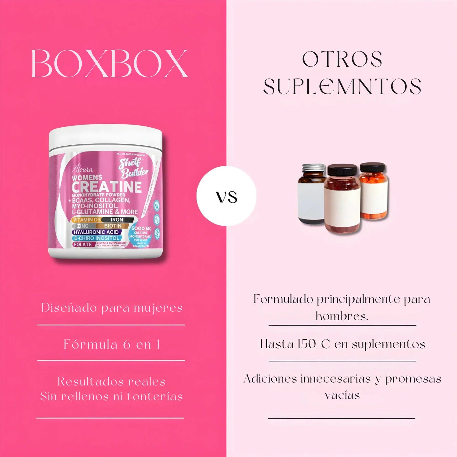 👉 No. Aloura Women’s Creatine está diseñada específicamente para el cuerpo femenino. Su fórmula potencia fuerza y definición, pero sin dar un volumen exagerado. Te ayuda a moldear glúteos, piernas y abdomen de manera natural.