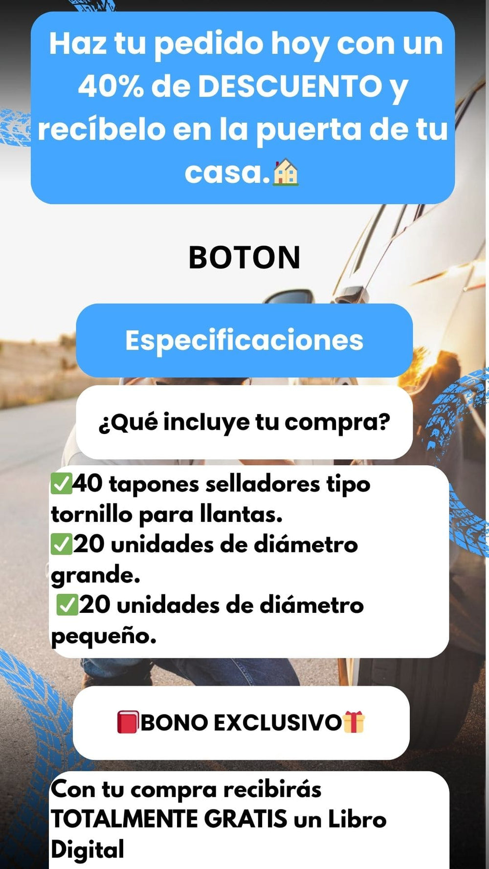 Kit Tornillo Reparador de Pinchazo x40 Unidades